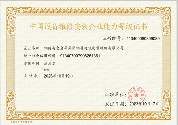 • 中國設(shè)備維修安裝企業(yè)能力等級(jí)證書