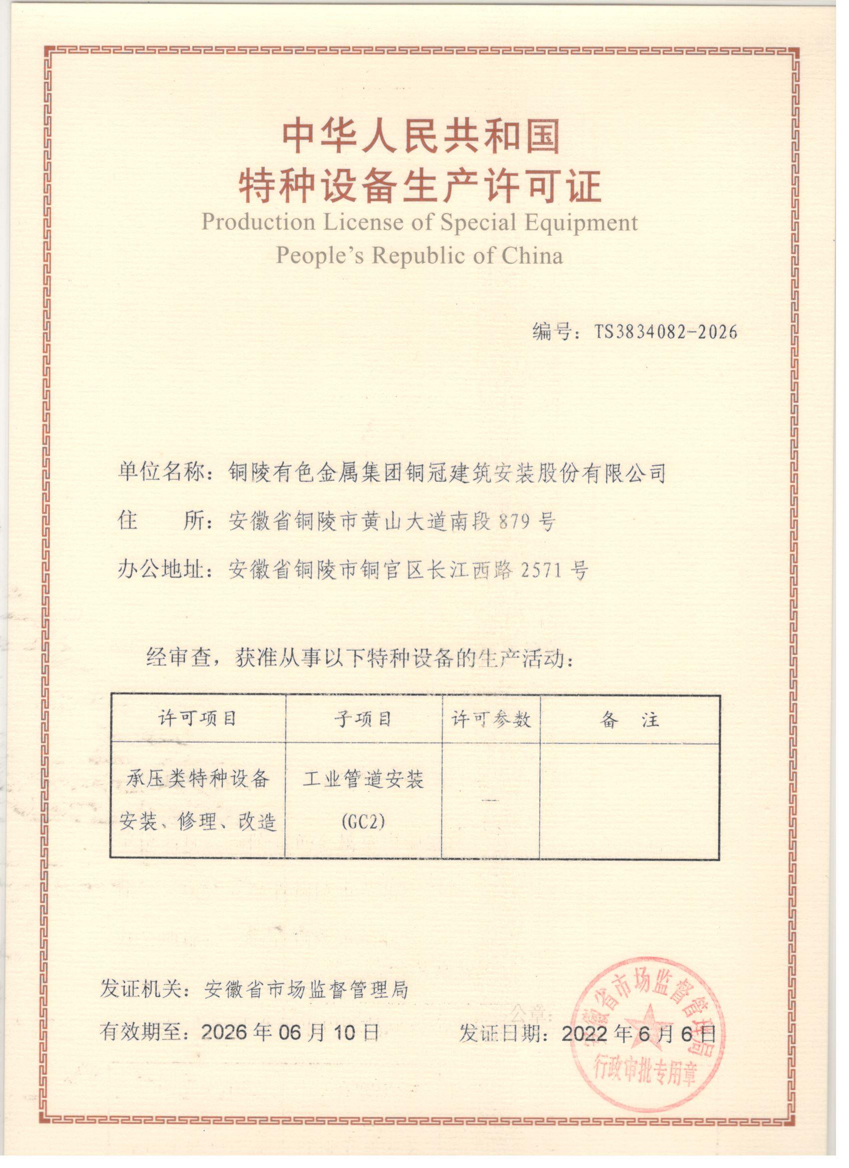 • 特種設(shè)備安裝改造修理許可證-壓力管道