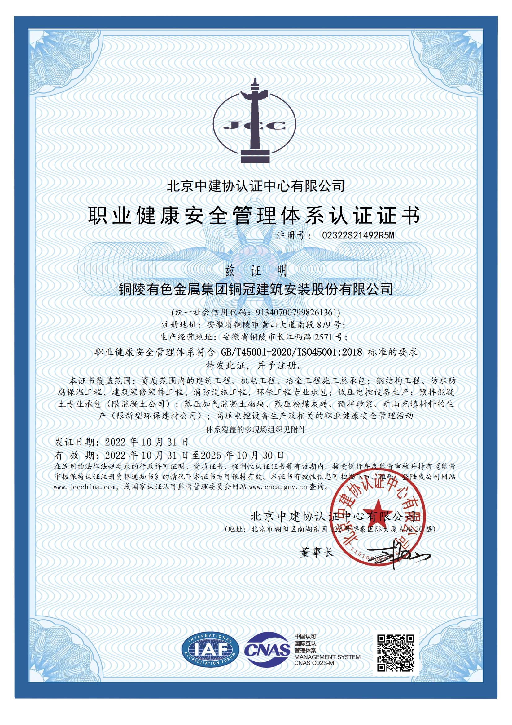 • 職業(yè)健康安全管理體系認(rèn)證證書
